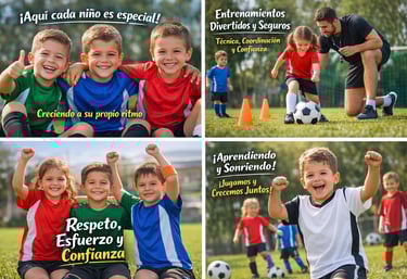 En nuestra academia de fútbol, cada niño es único y especial. Aquí no se trata solo de aprender a jugar, sino de crecer, disfrutar y descubrir todo lo que son capaces de lograr.